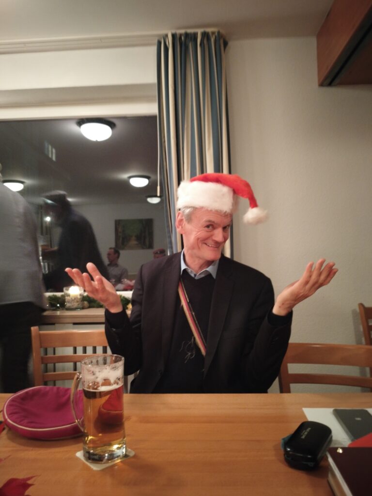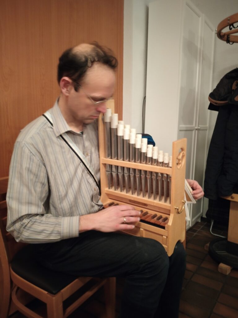 Am 19. Dezember 2025 versammelten sich die Mitglieder des AHSC zu Lüneburg im VAC und WVAC im Vitallissimo auf dem MTV-Gelände. Das letzte AHSC-Treffen im Jahr steht immer im Zeichen der herannahenden Weihnacht. Und so stimmte die Runde nach der Begrüßung durch Scheffe auch gleich das Adventslied „Maria durch ein Dornwald ging“ an. Begleitet wurden das Lied und die wackeren Sänger von dem Portativ „Chiara“ und einer Blockflöte. Ein Portativ ist ein Örgelchen, das vor allem ab dem Hochmittelalter bis in die Renaissance gespielt wurde. Es wird auf den linken Oberschenkel gestellt, die rechte Hand spielt auf der Tastatur, und die linke Hand bedient den Blasebalg.